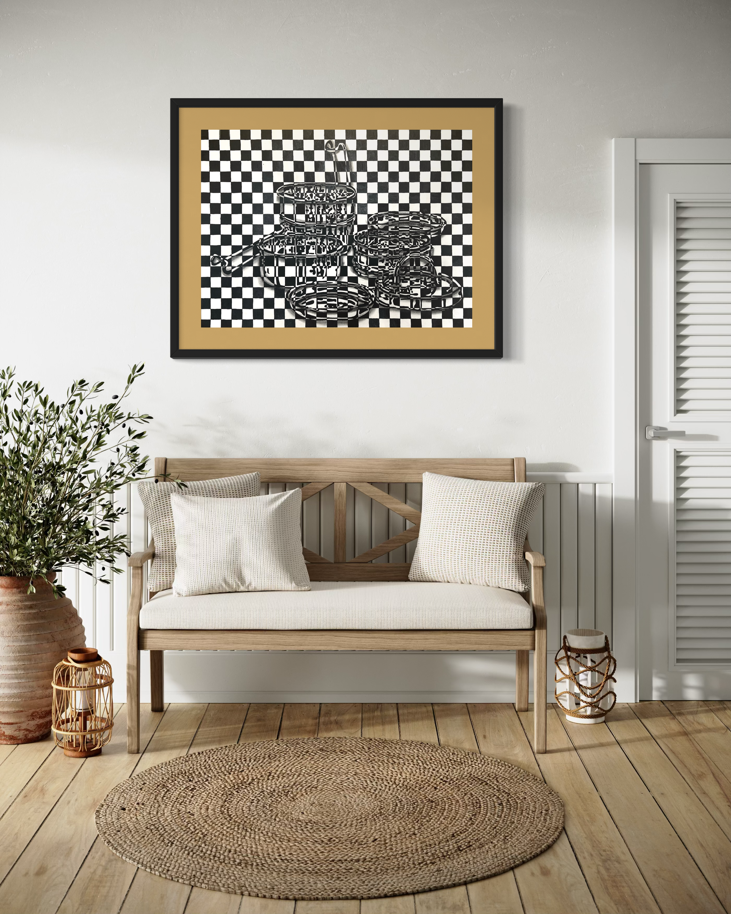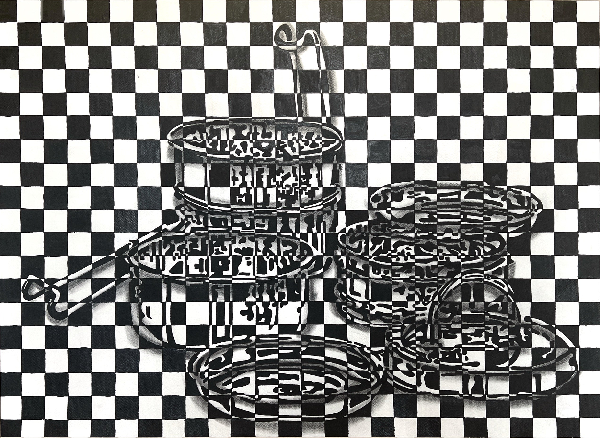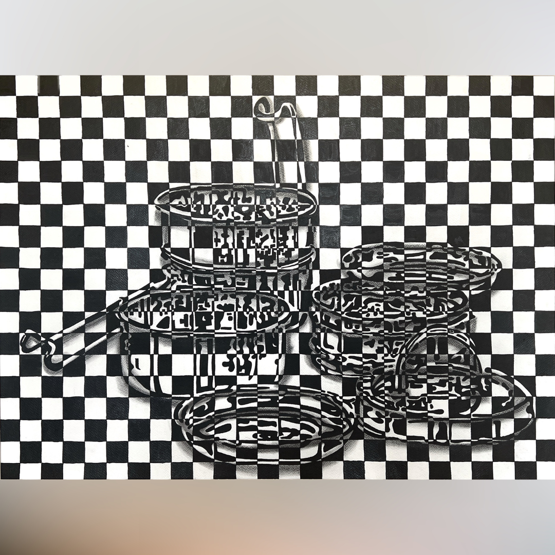 This artwork transforms an everyday tiffin box into a surreal illusion, suspended mid-air against a checkered background, it defies gravity and expectation. Once a symbol of daily routine, the tiffin here takes on a new role: a quiet tribute to care, tradition, and the silent gestures of nourishment. Beneath its simple form lies the echo of countless mornings, of food prepared with love, packed with intention, and sent off as a wordless message of belonging. The floating tiffin becomes a metaphor for emotions often carried but rarely spoken. A visual pause where the weight of love is felt most in its lightest offerings. A reminder that the smallest objects often hold the deepest truths of the heart.
